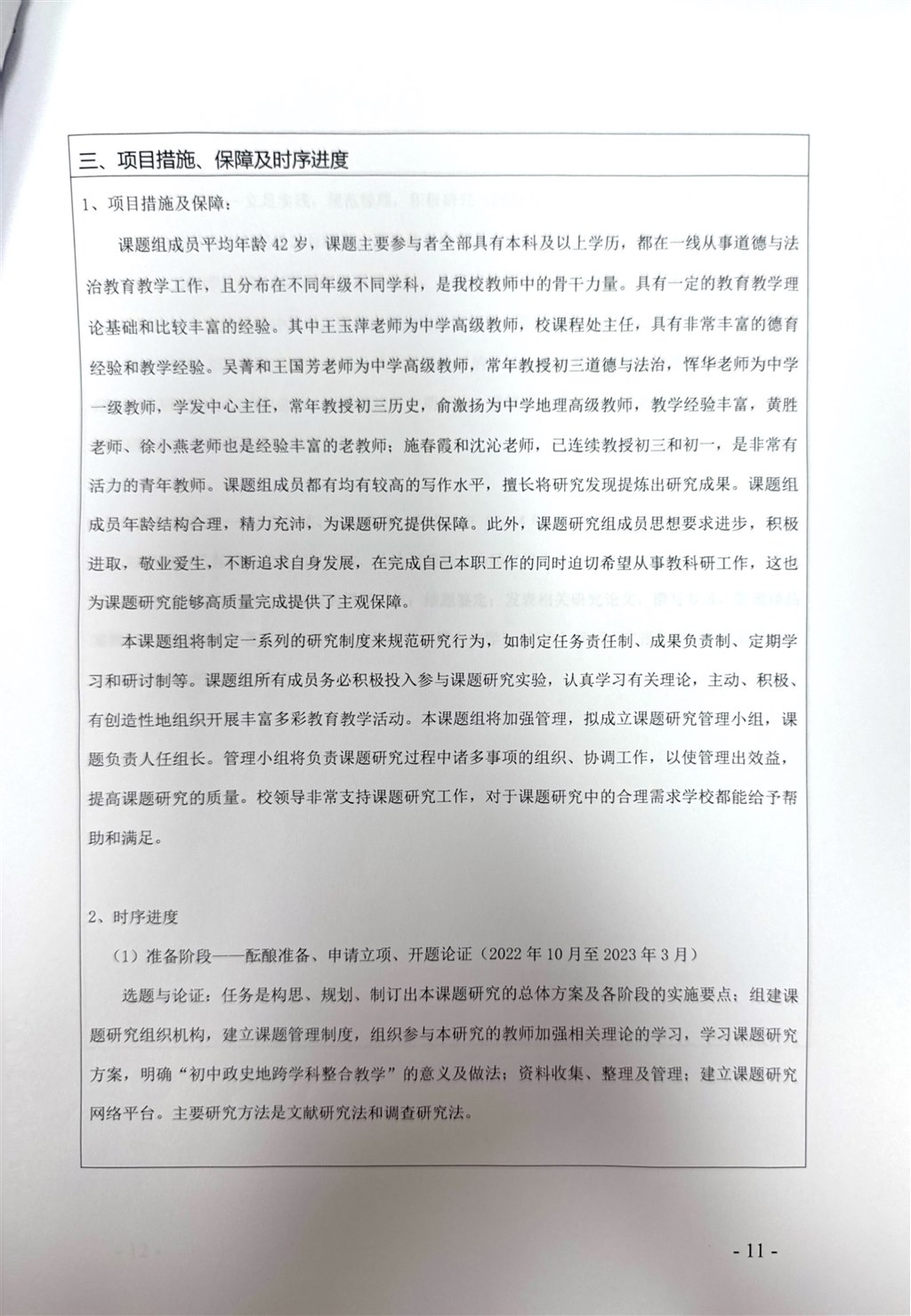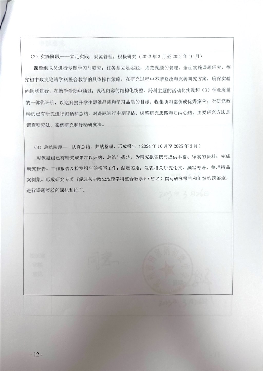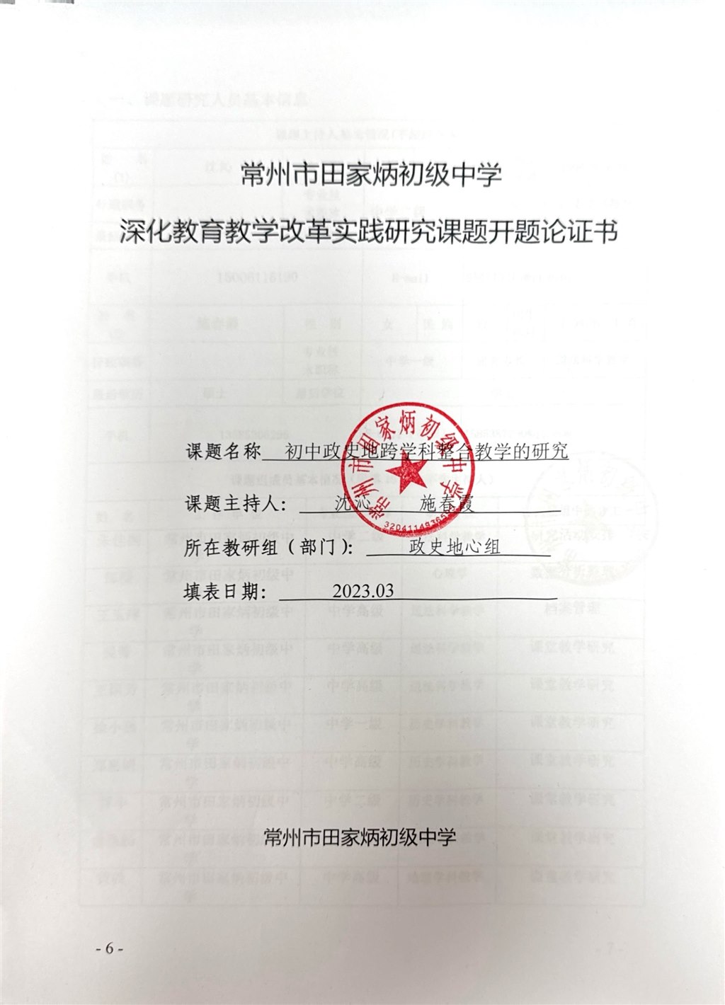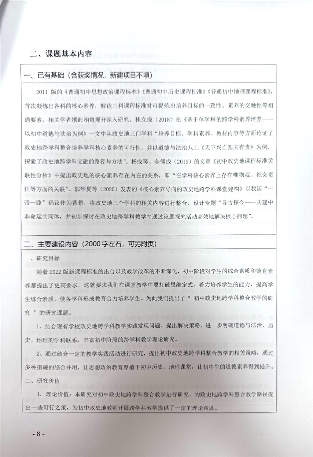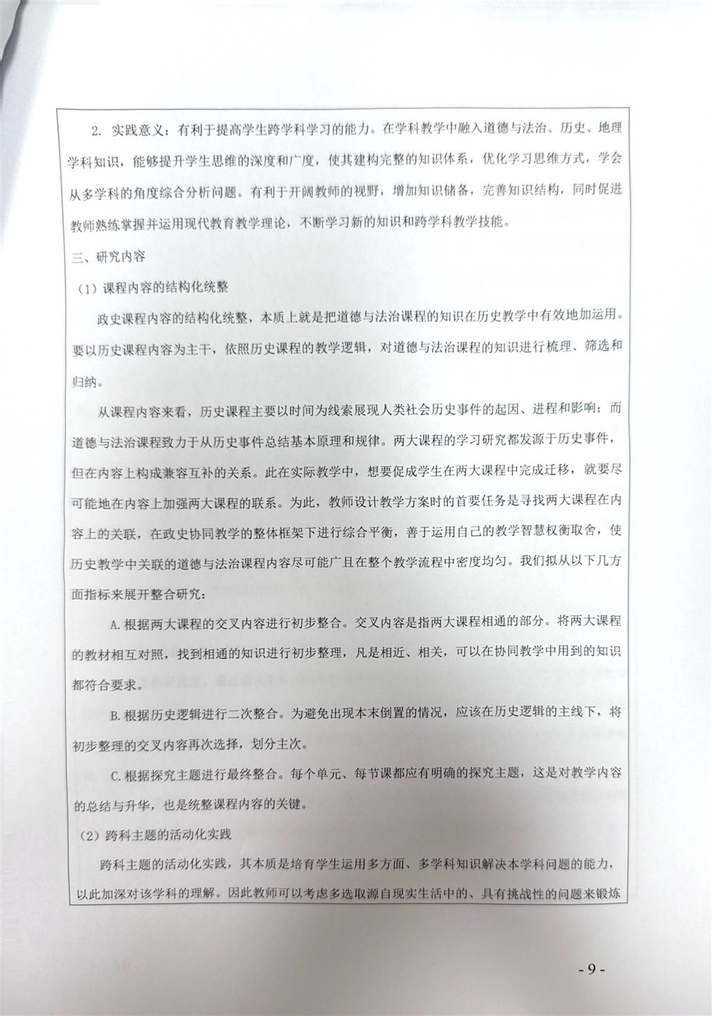 初中政史地跨学科整合教学的研究校级课题开题报告
