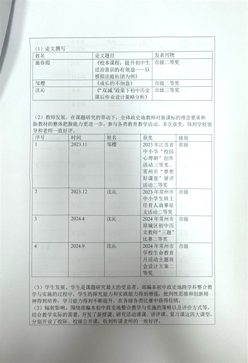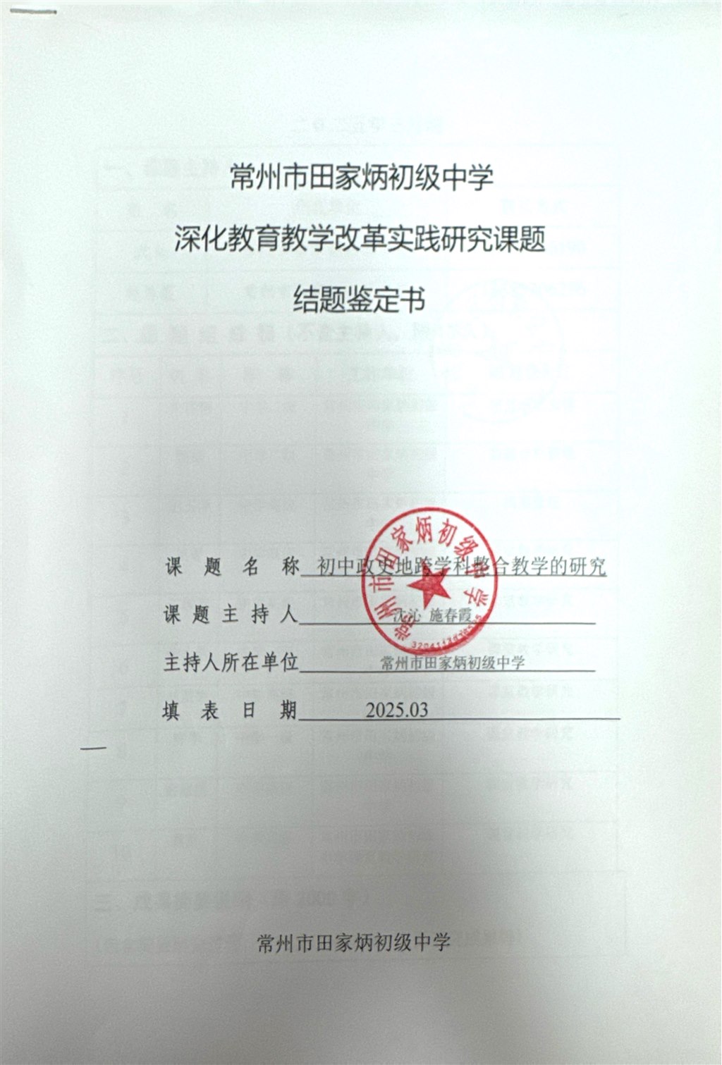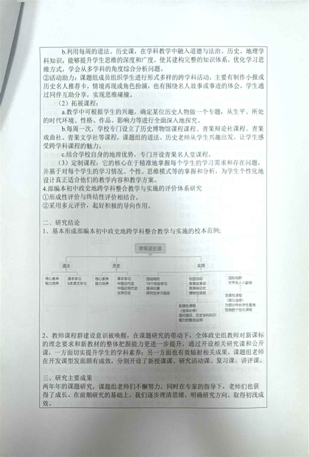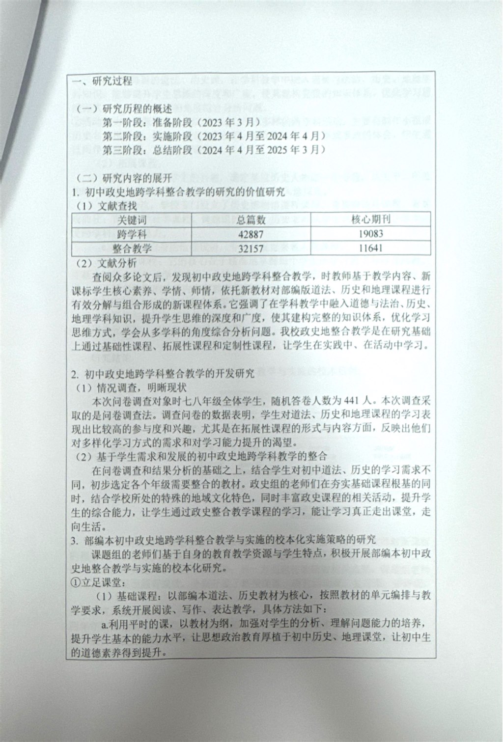 初中政史地跨学科整合教学的研究校级课题结题报告