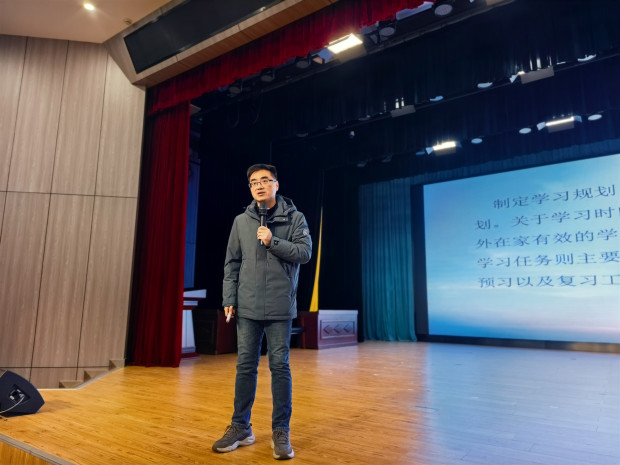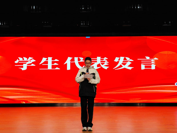 榜样的力量在于引领,经验的分享更能启迪智慧。在本次大会上,九(1)班的胡天宇同学作为学生代表上台发言,与大家分享了他的数学学习心得。他以“联结”“攀登”为核心,用生动比喻拆解学习难题,毫无保留地传递实用技巧,为同学们带来宝贵启发。他的发言朴实而深刻,为正在探索高效学习路径的同学们提供了有益的借鉴。
