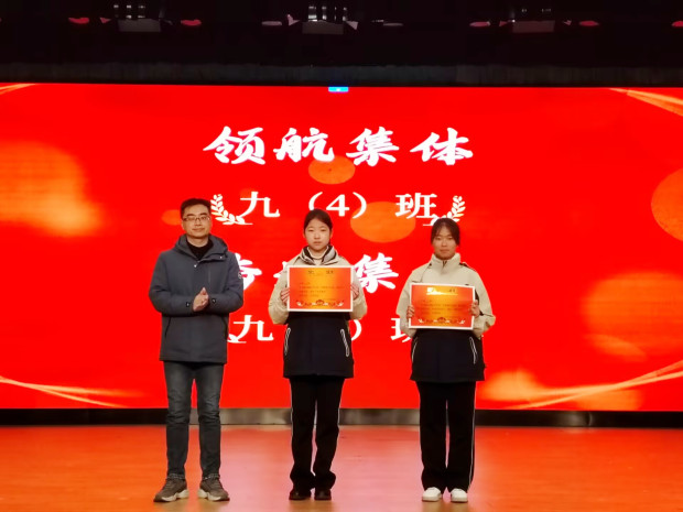初冬暖阳聚朝气,逐梦青春正当时。11月19日下午,九年级期中表彰大会顺利举行,九年级全体师生齐聚一堂,共赴这场以“逐梦期中·榜样领航”为主题的荣誉盛会,总结半程得失,凝聚冲刺力量。 大会在庄严而热烈的氛围中拉开帷幕。班级是成长的基石,九(4)班凭借严谨学风、奋勇争先荣获“领航集体”,九(6)班以团结协作、积极向上摘得“奋进集体”称号,陈琦副校长为获奖班级颁奖,大家共同见证集体力量的绽放。