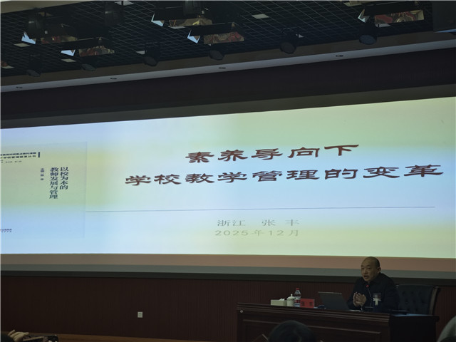 12月13日上午,浙江教育专家张丰带来以“素养导向下学校教学管理的变革”为主题的专题讲座,深入剖析素养导向的内涵与教学管理改革路径。 讲座中,张博士首先阐释了对“素养导向”的核心理解,提出其核心是学生本位、课程育人,以综合学习、实践育人为路径,依托自我教育与社会学习实现学生全面成长。他强调学习活动设计应先于教学过程设计,需立足学生立场,将学习资源与学习任务(支架)结合,让学习经历更具意义。围绕聚焦任务的学习设计,张丰梳理了从确定学习目标、设计学习任务,到学习材料研发、教师助学行为设计的完整流程,并介绍其《聚焦任务的学习设计——作业改革新视角》一书的核心章节,涵盖学习发生机制、任务变式设计、项目化学习设计等内容。下午,9个分组的组长分别将组内成员的学习心得作了汇总报告,张丰博士作了精要点评。 |