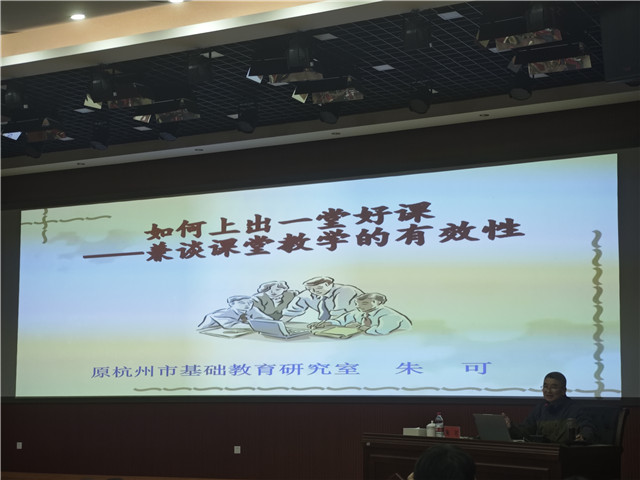 12月12日上午,华东师范大学课程与教学研究所安桂清教授带来主题为“以学习为中心的课例研究”的专题讲座,围绕课例研究的内涵特征、实践模型与报告撰写等核心内容展开深度分享。安桂清教授首先阐释课例研究的内涵与特征,指出其核心是通过“设计—实施—观察—反思—再实施”的循环流程,实现群体性合作、过程性反思与持续性改进。在实践模型板块,她提出课例研究需历经确定研究主题、选择研究对象、开展教学设计与课堂观察、分析教学成效等环节,其中确定主题要聚焦LCK(可学内容知识),教学设计需立足学生“最近发展区”做到“因学设教”。下午,原杭州市基础教育研究室专家朱可开展了以“如何上出一堂好课——兼谈课堂教学的有效性”为主题的专题讲座,从教学问题、改进方向等维度,为在场教师带来了深度的教学思考。朱教授首先凝练了当前课堂教学存在的七大问题,包括教学主题不清、主线不明、情境缺乏、深层引领不足等,同时剖析了问题背后常规意识淡薄、教材解读肤浅、学情分析空泛等六大原因,指出教师需提升教学意识与阅读能力。 围绕“好课”的打造,朱教授提出核心观察维度:把握“好课应该有效”的原则,纠正“目标设定空泛”“情境营造虚假”两大误区,强调目标设定要贴合实际、情境营造需真实生动;强化“眼中有生、脑中有本、心中有魂”三项意识,即让学生真正参与课堂活动、深入解读课标与教材、精设计、明环节、高立意地打造课堂内核。