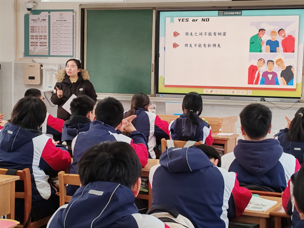 共赏八面“育人景” 活动当日,八大学科分会场同步开启各具风采的课堂展示。相同的课题,在不同的教师手中,演绎出别样的精彩,充分展现了核心素养导向下课堂教学的多元可能与创新活力。 语文会场,田家炳初中的课堂侧重“文化意象的审美建构”,引导学生沉浸体验;勤业中学则聚焦“历史画卷的文学再现”,鼓励思辨表达。几节语文课均致力于体现语文工具性与人文性的统一。 数学会场,勤业中学教师搭建严谨的逻辑阶梯,彰显“数学思维的精确性”;田家炳初中教师则设计生活化探究任务,借助“青鹿纸笔课堂系统”及时进行学情反馈,突出“数学建模的应用性”,共同诠释了理性精神与创新思维的培养。 英语会场,兰陵中学营造了生动的沉浸式情境,强化语言运用;勤业中学则巧妙融入跨文化对比,深化理解与包容。几节课都在真实情境中巧妙整合了听说读写等学科关键能力的培育。 物理会场,两位教师分别从“验证规律”和“发现规律”不同角度切入,引导学生像科学家一样思考与操作,生动演绎了科学探究与实践素养的培养过程。 文综会场(道法、历史、地理)更是异彩纷呈。历史课对三国两晋南北朝时期的科技文化的解读视角多元,地理课对板块运动的分析方案各异,道法课对价值观念的引导路径不同,但均牢牢扣住了“家国情怀、社会责任感、人地协调观”等素养目标。 心理课堂作为关注学生健康成长的重要阵地,教师采用团体辅导与情境体验的模式,处理交友这一主题,展现了心理健康教育方法的多样性与专业性。