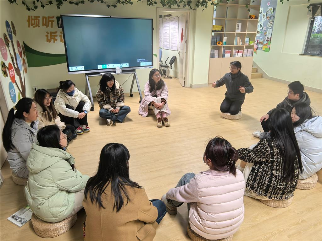 教师那份沉甸甸的责任感与心中的疲惫如影随形,难以消散。他们也需要被理解,需要被关怀,需要在忙碌之余找到一片属于自己的宁静之地,让心灵得以休憩。田初中特组织青年教师进行了压力疏导团辅活动,教师们如约而聚,在余圣陶教授的专业引导与同伴互助中,完成了一场又一场治愈身心的压力释放之旅。 “雨中人”绘画活动,让老师们在无拘无束的创作中投射内心状态。笔尖下的雨景或急促或平缓,人物或撑伞前行或从容伫立,一幅幅画作成为压力的“可视化表达”,也让老师们在自我审视中更清晰地感知压力来源。 “吐槽大会”上,老师们围坐一圈,敞开心扉倾诉工作中的难题,真诚的分享引发强烈共鸣,此起彼伏的回应与安慰,让每一位参与者都感受到“原来我不是一个人”的温暖。 本次团辅活动虽已落幕,但“倾诉”与“互助”的种子已然生根。老师们不仅认清了压力本质,更收获了同伴的支持与科学的疏导方法。愿每一位教育工作者都能卸下重担,在团体的温暖与科学的方法中,从容应对压力,用健康的心态与饱满的热情,在教育之路上稳步前行,浇灌出更多成长的繁花。