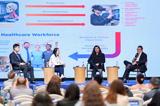在为期两天的学习过程中,两位老师全程参与了多场高质量主旨报告与专题研讨。北京航空航天大学熊瑾教授以“人工智能与未来教育”为题,勾勒了AI技术重塑教育生态的前景;北京建筑大学秦建军教授与南卡罗来纳州立科学与数学学院工程系主任Haiqing Liu Kaczkowski共同探讨了“人工智能时代的教育应该培养什么样的人”,引发对育人目标的深度思考。此外,泉州五中学生代表黄以诺与副校长戴丰春联袂呈现的“亲历者说:AI for 学校教育”专场,生动展示了智能时代STEM教育创新的本土实践,令两位老师深受启发。